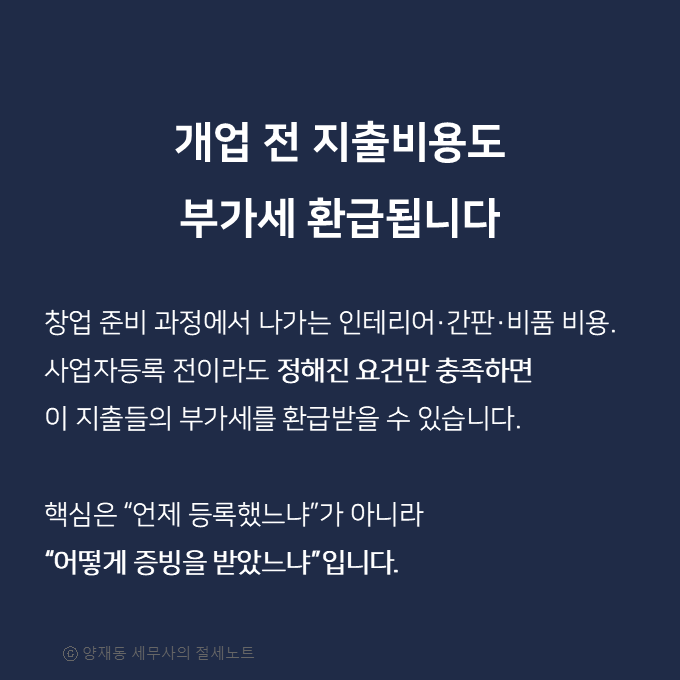 그런데 이런 개업 전 지출비용에도 부가세 환급이 가능하다는 사실, 알고 계셨나요?