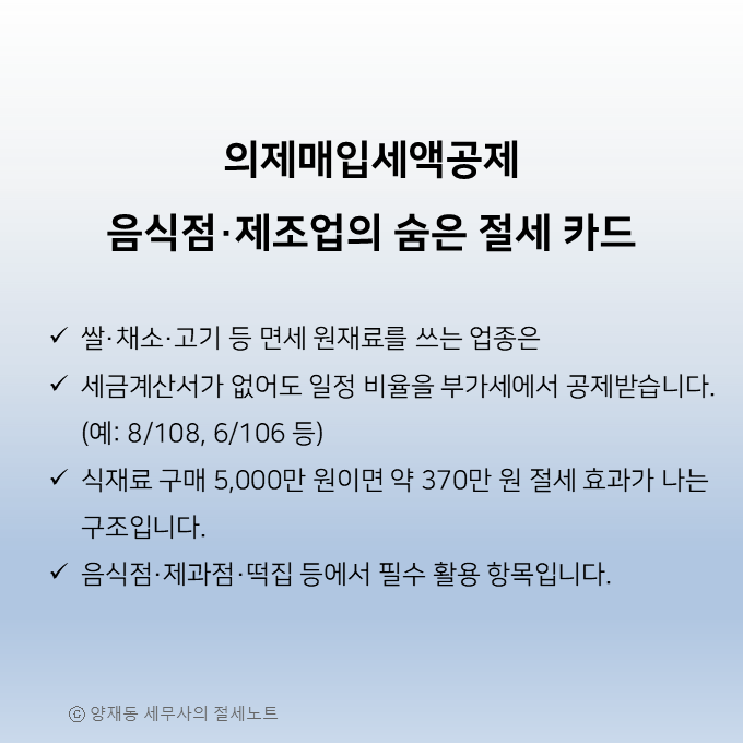 4️⃣ 의제매입세액공제 ― 음식점·제조업의 숨은 절세 카드