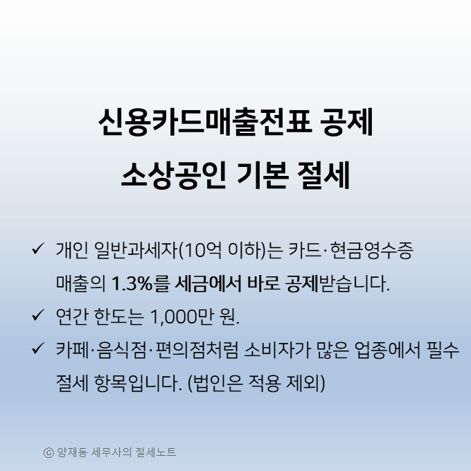 2️⃣ 신용카드매출전표 등 발행세액공제 ― 자영업자 절세의 핵심