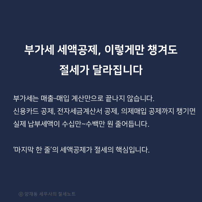 즉, 회계상의 절차가 아니라 ‘실제 내야 할 부가세를 줄여주는 장치’입니다.