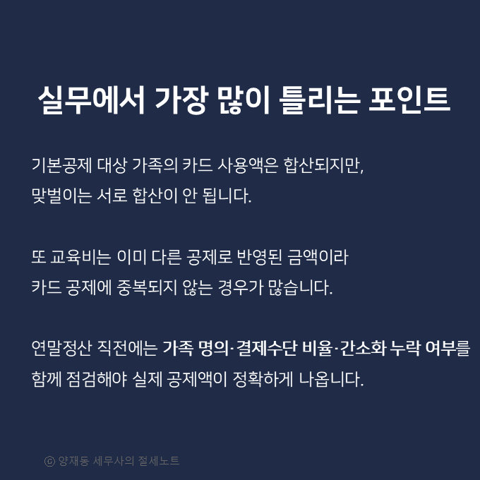 실제 연말정산에서는 다음과 같은 점검이 필요합니다.
