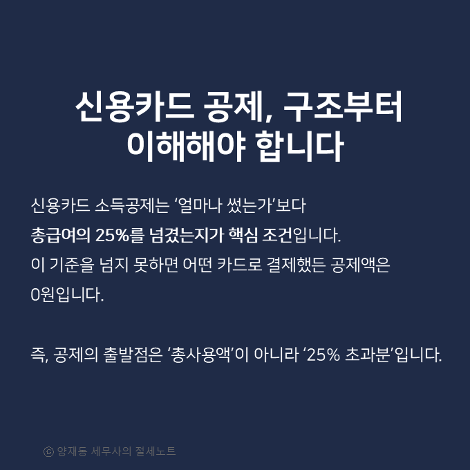 신용카드 공제는 총급여의 25%를 기준금액으로 설정합니다.