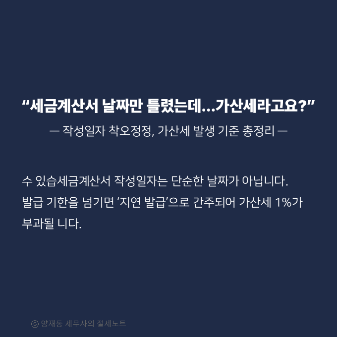 세금계산서 작성일자 실수하면 가산세일까? ― 착오정정·지연발급 기준 완전정리 본문