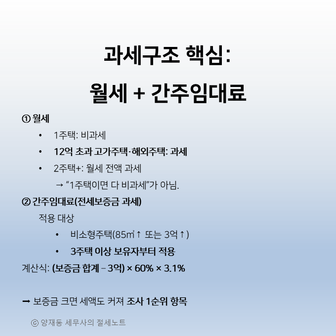2️⃣ 임대소득 과세 구조 ― 월세 vs 간주임대료