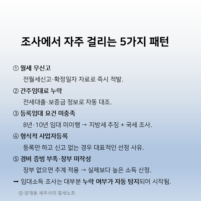 3️⃣ 국세청이 주택임대사업자에서 자주 포착하는 ‘조사 선정 포인트’