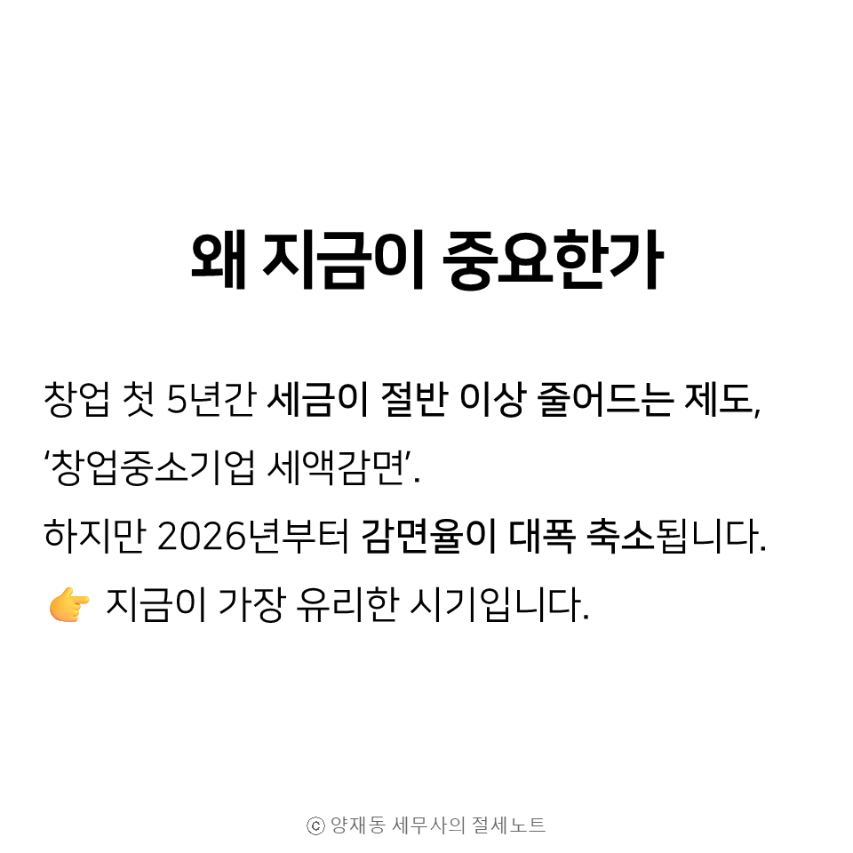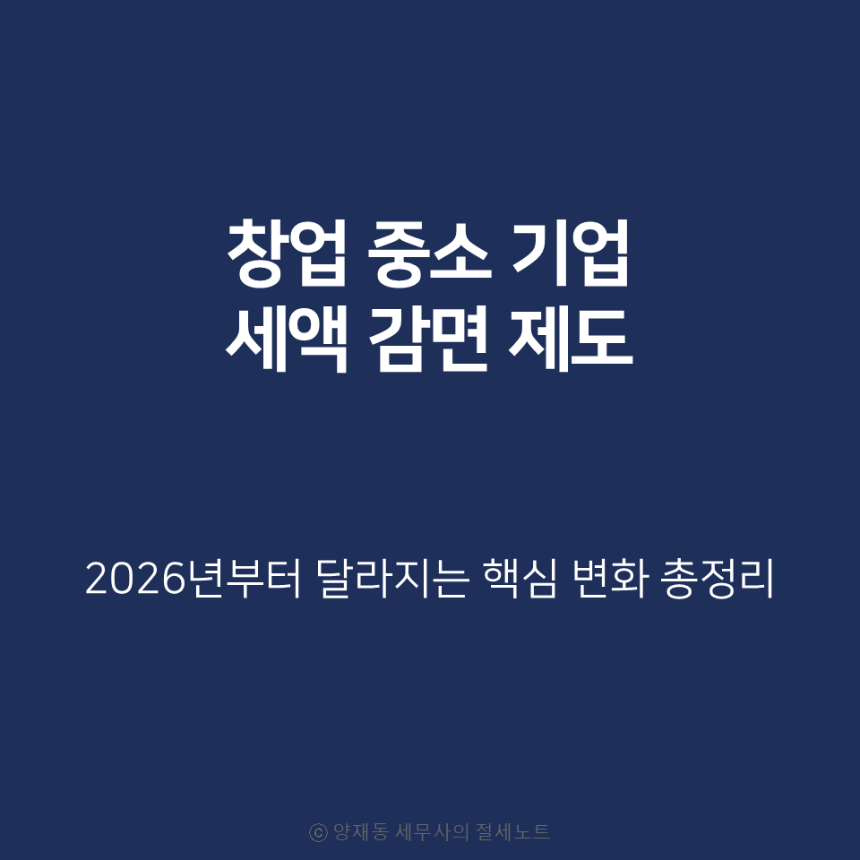 그래서 창업중소기업 세액감면 제도는 부담을 크게 줄여주는 장치인데, 2026년부터는 이 제도의 구조가 크게 바뀝니다.