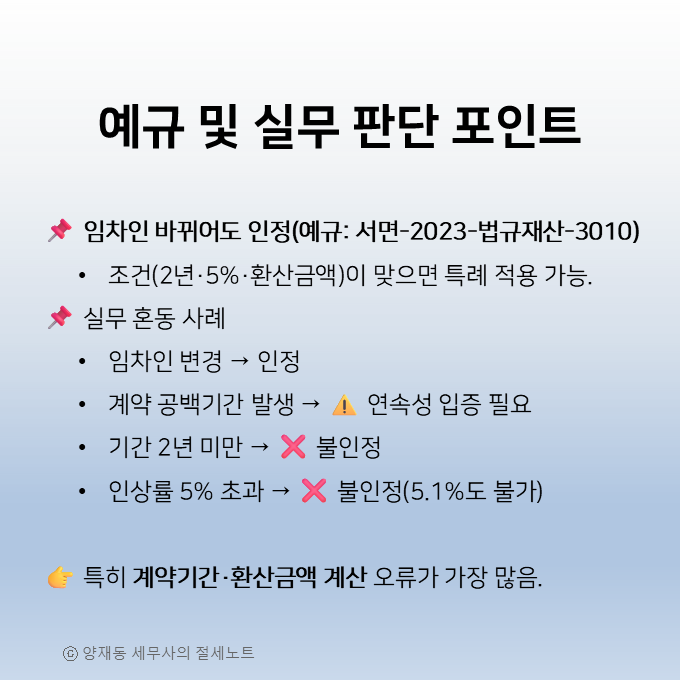 실제 실무에서는 세입자가 바뀌는 경우가 매우 흔하기 때문에 이 예규는 상당히 중요한 판단 기준이 됩니다.