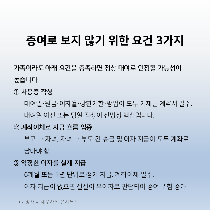 2️⃣ 증여로 보지 않기 위한 핵심 요건 3가지