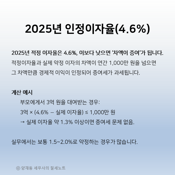 3️⃣ 2025년 기준 적정 이자율(인정이자율)은 4.6%