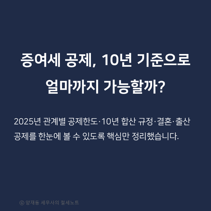 특히 2025년부터 도입된 결혼·출산 증여세 공제는 기존 배우자·자녀 공제와 별도로 적용되기 때문에 실무적으로 활용도가 높습니다.