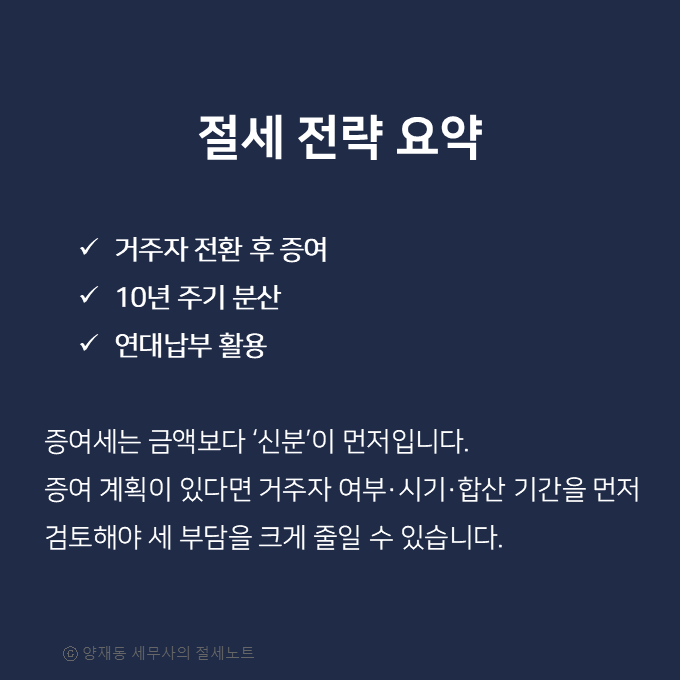 7️⃣ 마무리 ― 증여세는 ‘금액’보다 ‘신분’이 좌우한다