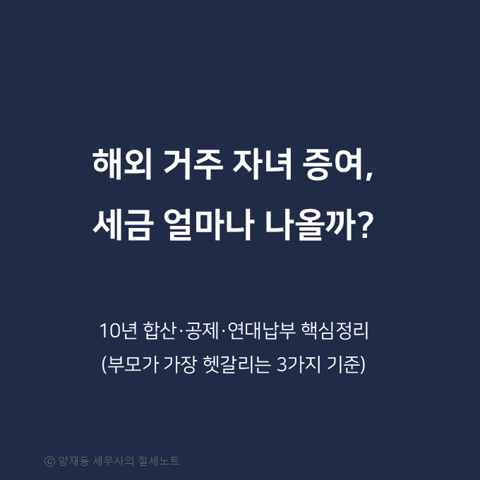 해외 거주 자녀 증여, 세금 얼마나 나올까? 10년 합산·공제 규정 핵심정리 본문