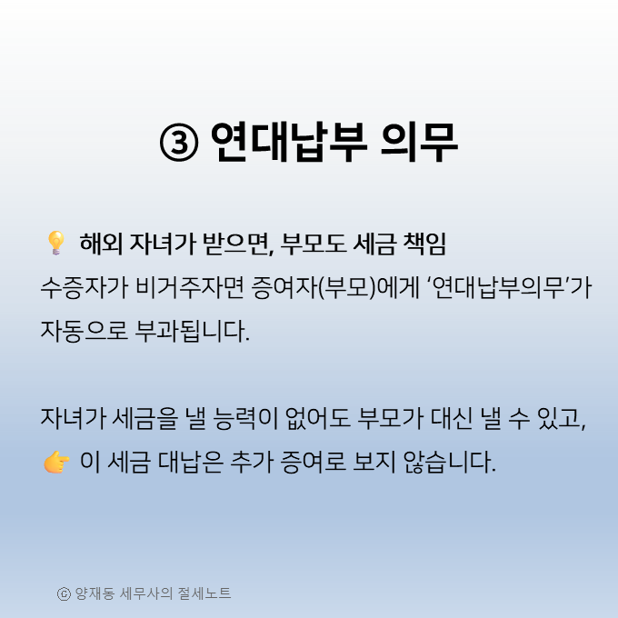 4️⃣ 연대납부의무 ― 비거주자 증여의 핵심 쟁점