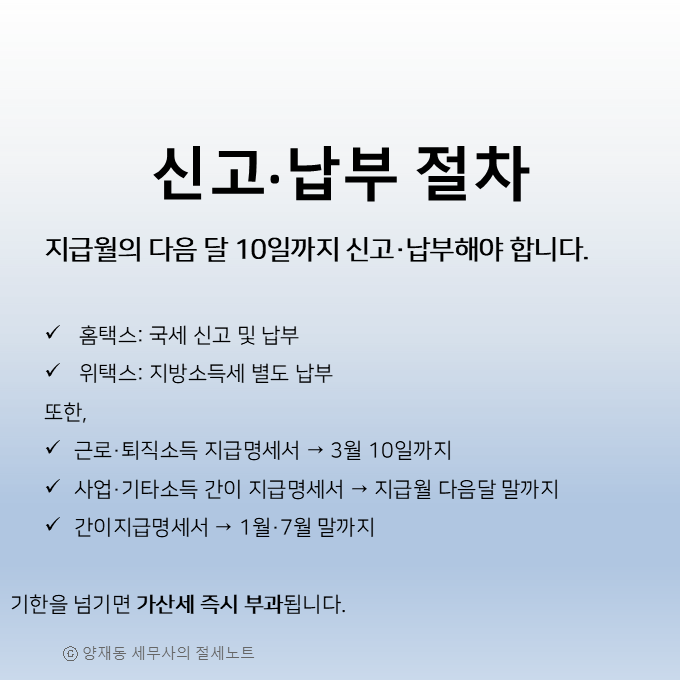 - 지급월 다음 달 10일까지 신고·납부