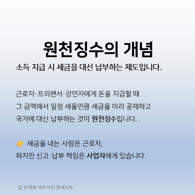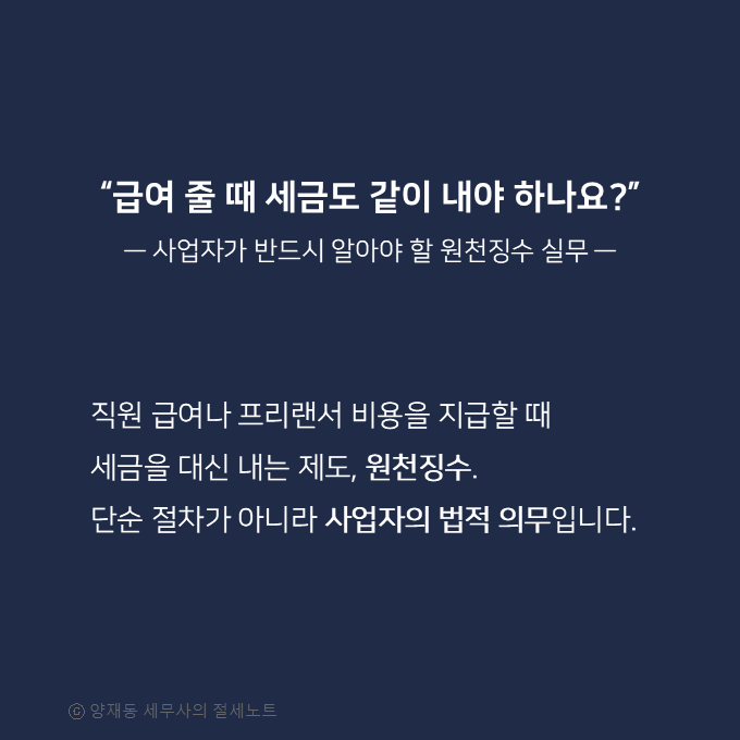 원천징수는 단순한 세금 공제가 아니라 매월 사업자의 세무이행을 확인하는 핵심 절차입니다.