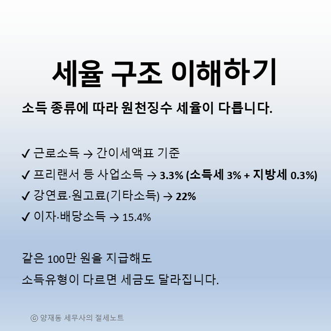 2️⃣ 소득유형별 원천징수 세율 구조