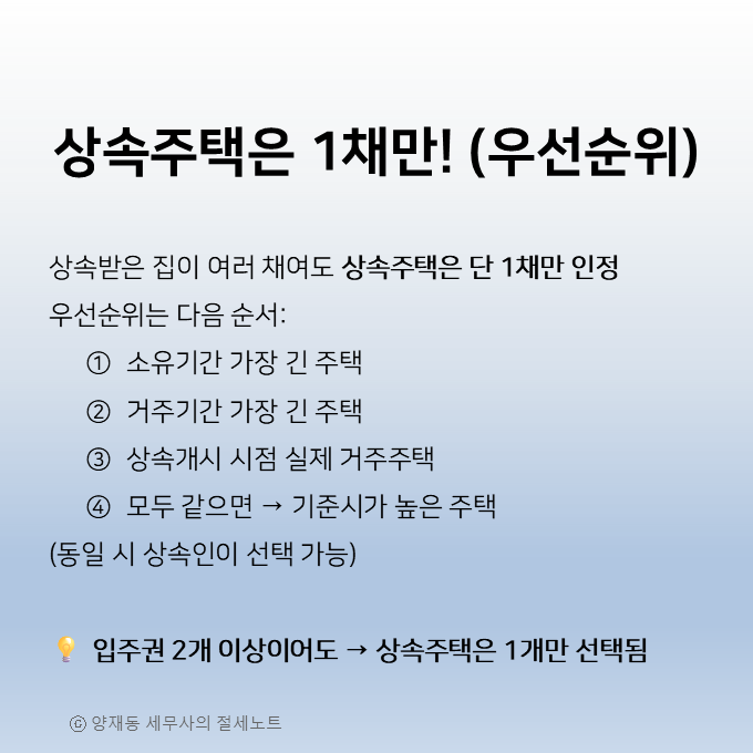 2️⃣ 상속주택은 단 1채만 인정된다 — 우선순위 규정
