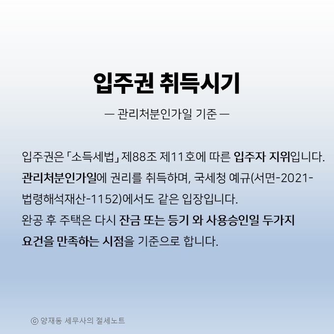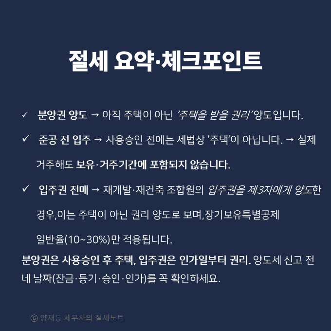 3️⃣ 입주권 취득 ― “권리 취득일”과 “주택 취득일”은 전혀 다른 개념