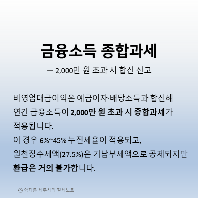 🔎 결론 ― 개인 간 이자라도 ‘금융소득’이다